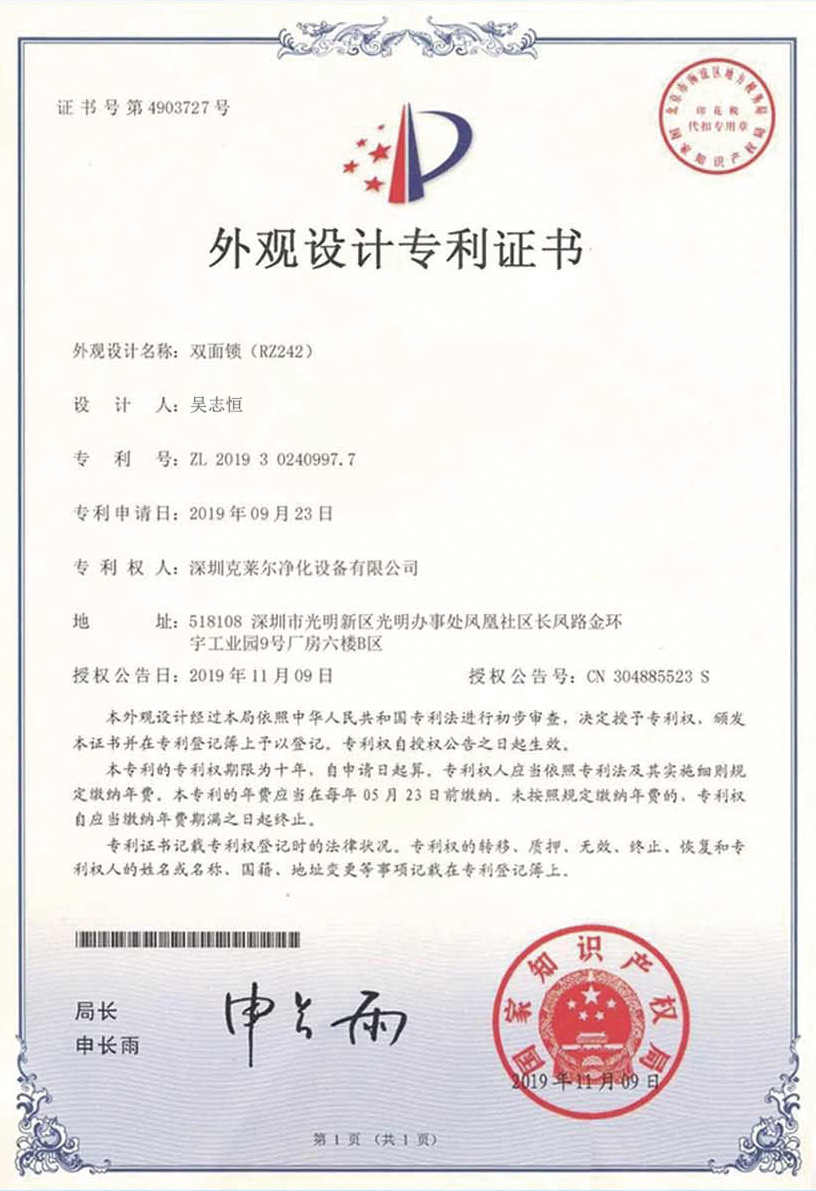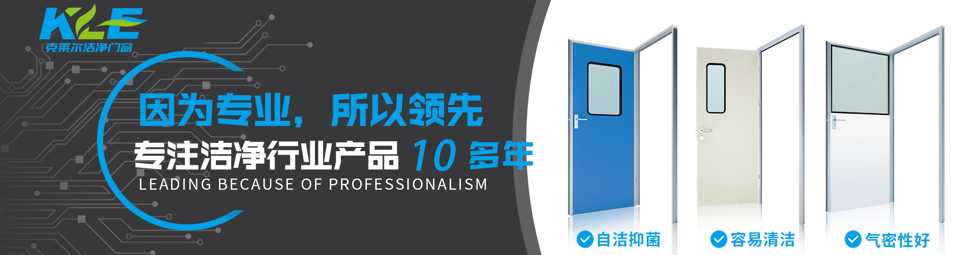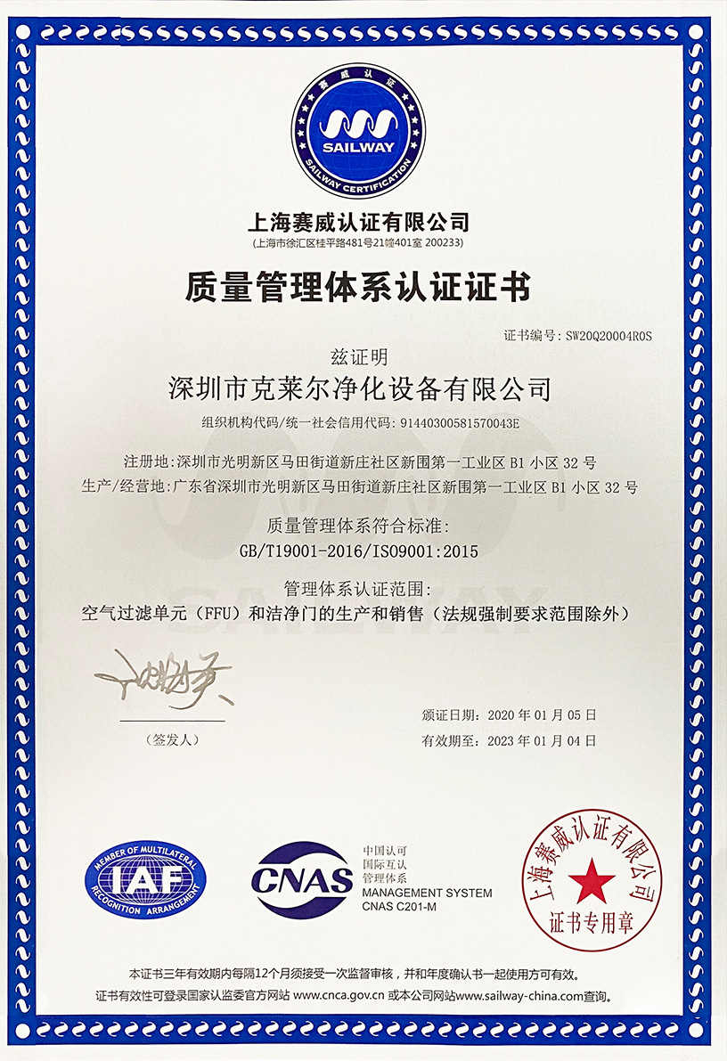 廣東克萊爾潔凈科技有限公司是一家集生產(chǎn)、研發(fā)、銷(xiāo)售于一體的專(zhuān)業(yè)潔凈門(mén)窗生產(chǎn)企業(yè)。 公司擁有現(xiàn)代化標(biāo)準(zhǔn)廠(chǎng)房10000多平方米,配備全自動(dòng)靜電噴涂流水線(xiàn)及 3000平以上萬(wàn)級(jí)無(wú)塵生產(chǎn)車(chē)間,專(zhuān)供潔凈門(mén)及中空窗的生產(chǎn)裝配等。公司不斷引進(jìn)一流生產(chǎn)設(shè)備(如瑞士百超激光切割機(jī)、日本AMADA數(shù)控折彎?rùn)C(jī)、超聲玻璃清洗機(jī)等),采用國(guó)際最先進(jìn)的技術(shù)及裝備確保產(chǎn)品品質(zhì),是華南區(qū)域最具規(guī)模的專(zhuān)業(yè)潔凈鋼制門(mén)及中空潔凈窗生產(chǎn)廠(chǎng)家。公司在同行業(yè)率先通過(guò)ISO9001質(zhì)量體系認(rèn)證,并先后獲得多項(xiàng)專(zhuān)利認(rèn)證及榮譽(yù)證書(shū)。 KLE purification equipment Co., Ltd. is a set of production, research and development, sales in one of the professional clean doors and windows production enterprises.The company has a modern standard workshop of more than 10000 square meters, equipped with automatic electrostatic spraying line and more than 30 million level dust-free production workshop, specially for the production and assembly of clean doors and hollow windows. The company constantly introduces first-class production equipment (such as Swiss Baichao laser cutting machine, Japanese AMADA CNC bending machine...